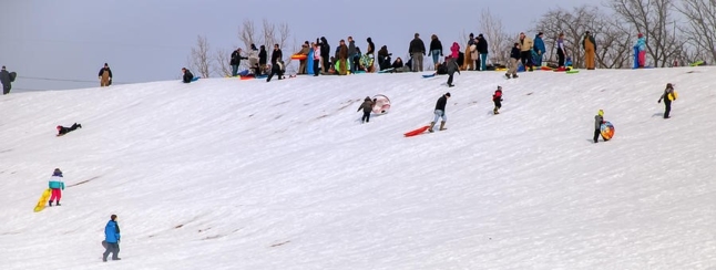 than it is today, but there are the same activities we enjoyed 65 years ago. We have fond memories sledding and ice skating, along with throwing snowballs at friends, playing hockey in the park, and making snowmen in our front yards. This picture, taken at Franke Park, is where we may have spent time sledding and ice skating.