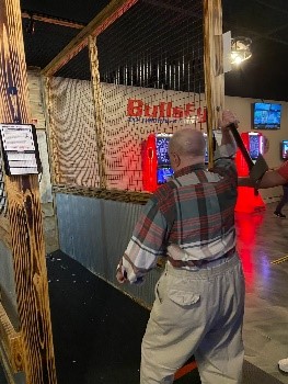 together stays together. His family gathered at BullsEye at Mitchell’s Restaurant for a family get together. Don did not let his vision impairment get in the way. He threw an ax and hit the bullseye? Way to go Don. You always were on target!