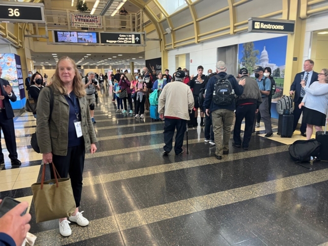The day was action-packed, with so much to see, experience, and feel, in such a short period of time, it seemed like it was over in an instant, and before I knew it, it was time to board the buses for the trip back to Reagan Airport for the flight home. When we got to Reagan, one might think the day was over, but that was not true. Again, there was a crowd of people cheering and waving and showing great appreciation for our service. But even then, the trip was not over yet.