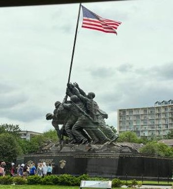 Getting back on the bus we drove past the Memorial to the U.S. Marine Corps. It depicts the famous moment of the raising of the flag on Iwo Jima after the hard-fought battle.