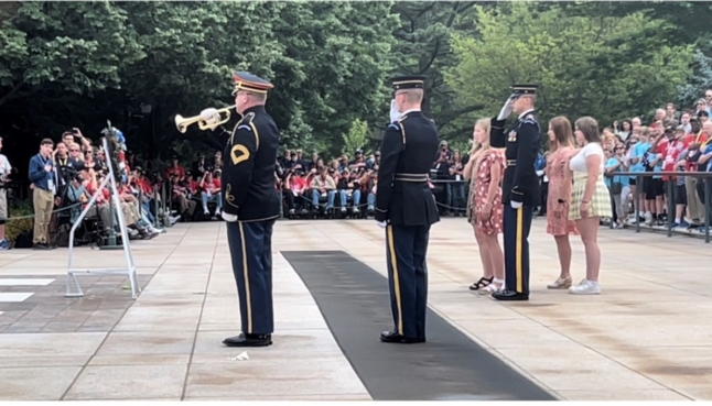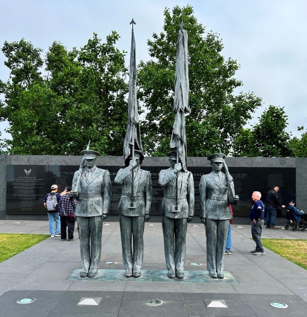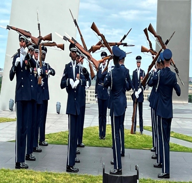 Getting back on the buses, we went to our final stop, The Air Force Memorial where we had our evening meal. The highlight of this stop was a demonstration by a crack Air Force Drill Team doing a very complicated close order drill. I remember being in the army and doing a lot of marching, but never did I do anything like this. It was another example of military precision like we saw at the changing of the guard at the Tomb of the Unknown Soldier.